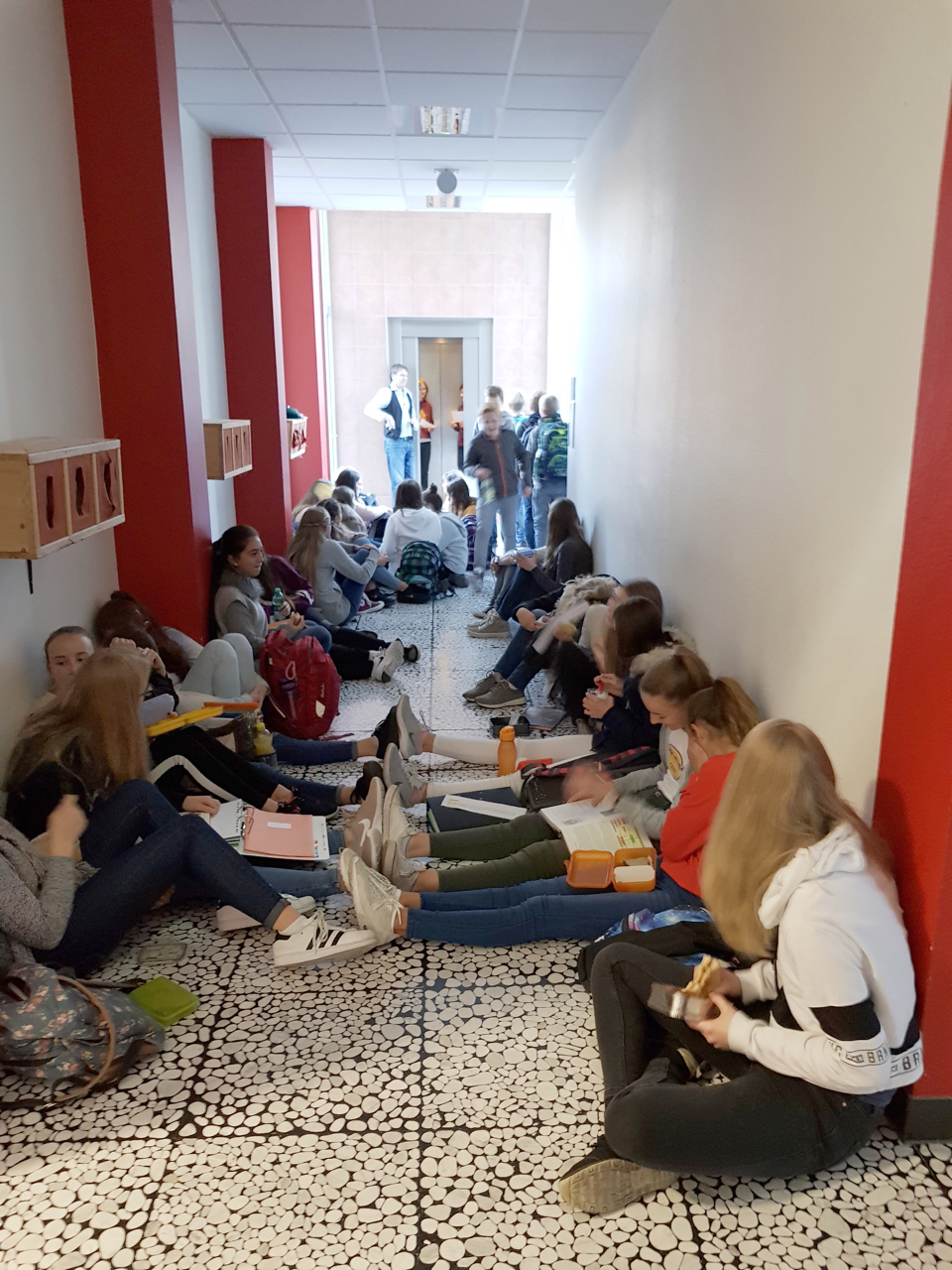 Die SLB ist in diesem Schuljahr Montag und Mittwoch in der ersten Pause geöffnet. Das Team der Arbeitsgemeinschaft Schülerlesebücherei kümmert sich um die kleinen und großen Besucher und hilft gerne, wenn man sich einmal wieder nicht entscheiden kann, welcher Roman als nächstes verschlungen werden soll. Gleichzeitig engagieren sich die Mädchen und Jungen unter der Leitung von Frau Rauch auch über den Büchereibetrieb hinaus, z.B. bei der legendären Waffelaktion vor Weihnachten oder bei der dieses Jahr erstmals stattfindenden „Bücherraschungsaktion“ zugunsten krebskranker Kinder.